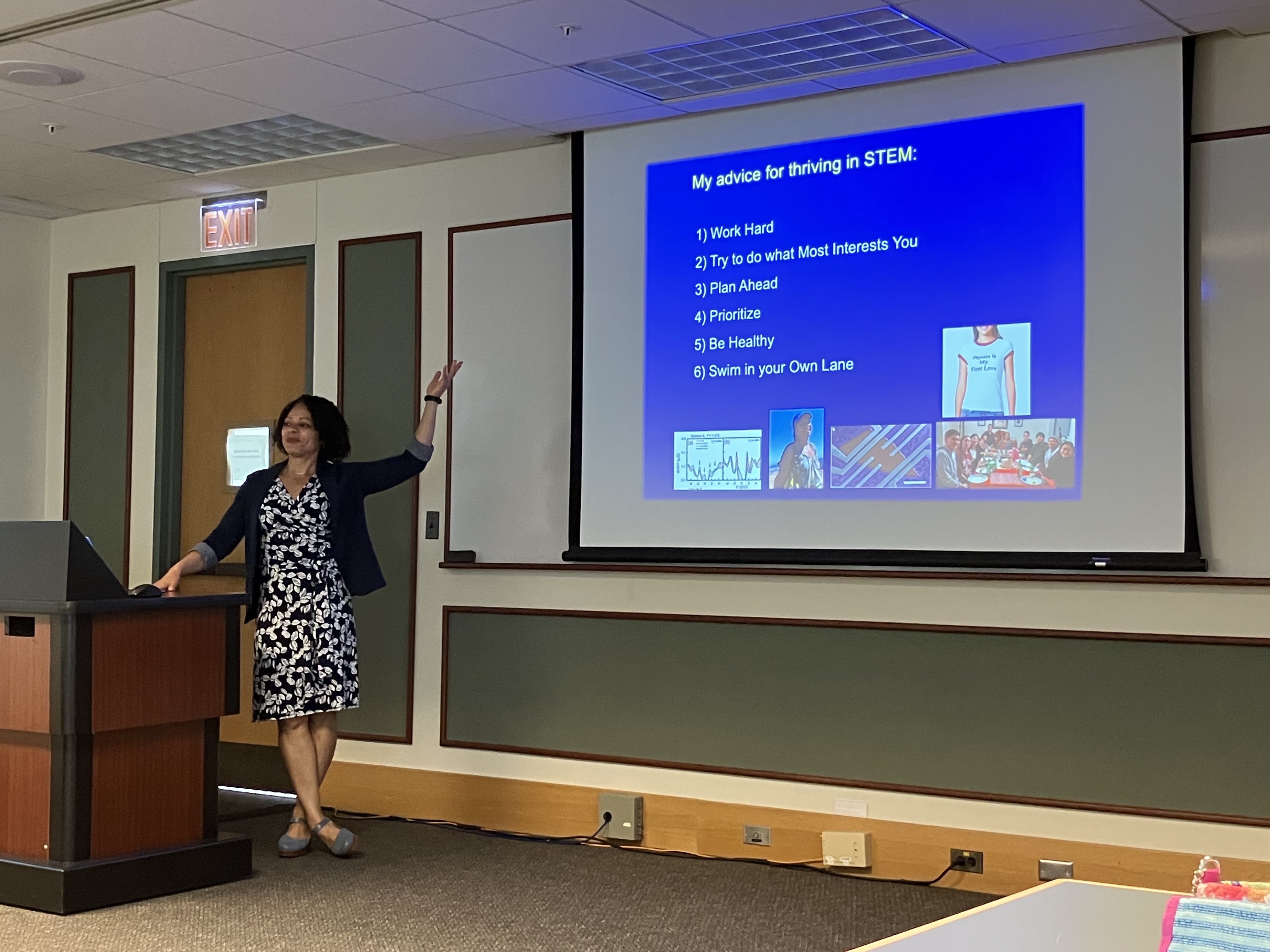 The University of Illinois Urbana-Champaign hosted an event for ARCS Foundation Illinois Chapter on Saturday, May 6, 2023. Members gathered at the Beckman Institute for Advanced Science and Technology for an interactive presentation by Dr. Nadya Mason, Director of the Beckman Institute and the Rosalyn Sussman Yalow Professor of Physics at UIUC. Dr. Mason spoke of her own journey as a scholar and woman to an enthusiastic audience full of questions. After lunch, current UIUC ARCS Scholar Jason Karakehian spoke of his research in plant biology; his work will revise the official classification of fungi with new work on the genera Propolis. Finally, ARCS Illinois Board Member and Scholar Alumna Dr. Jessica Saw led the group to the National Center for Supercomputing Applications (NCSA), where everyone put on their 3-D glasses in order to experience the immersive visualizations of the cosmos developed by NCSA’sAdvanced Visualization Laboratory